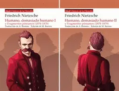 Esta obra, calificada por el propio Nietzsche como «monumento a una crisis», es el comienzo de toda la «filosofia de la sospecha». Redactada entre 1878 y 1879, en esta obra descubrimos los primeros pasos que le conducirán a la crítica de la moral vigente y hacia el nuevo amanecer que supondrá la llegada de Zaratustra. De este modo, Nietzsche rompe con sus dos grandes influencias previas, Schopenhauer y Wagner, que ya no son sino hojarasca. En Humano, demasiado humano Nietzsche no propone todavía un nuevo ideal sustituto de los viejos ídolos, sino que cuestiona los lugares comunes a los que nos asimos, todo ello a través de la autoexploración por la crisis vital sufrida durante la escritura de este texto.