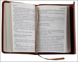 Elegante edición en piel de Los Santos Evangelios, con canto dorado, cinta de registro y cubierta de agradable tacto, en imitación piel con solapa de cierre imantada. Gracias a su formato pequeño y flexible y al papel biblia, el lector podrá tener el texto bíblico siempre a mano, en el bolsillo, en el bolso, en el cajón del escritorio o de la mesilla de noche, disponible para leerlo en cualquier momento y lugar. Porque, como dice el Papa Francisco, lo importante es «leer la Palabra de Dios: es Jesús quien nos habla allí».