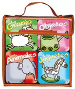 Un práctico maletín con cuatro educativos y manejables libritos para que los más pequeños de la casa aprendan de forma divertida sus primeras palabras. Mediante las atractivas ilustraciones de los libros los niños podrán identificar los animales y utensilios de la granja, otros animales de tierra, mar y aire, los objetos de casa y muchos de los juguetes que tienen en su habitación.