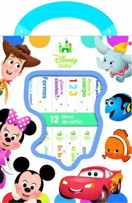 12 resistentes libros de cartón con conceptos de aprendizaje temprano y los personajes más queridos de Disney.