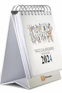 Variante del tradicional Taco Calendario con peana y anillas, para que lo puedas colocar en cualquier mesa. Su página por día, ofrece información diaria del calendario, santoral, salida y puesta del Sol y la Luna, reflexiones, sugerencias, frases célebres, minutos de filosofía y ofertas especiales de libros.