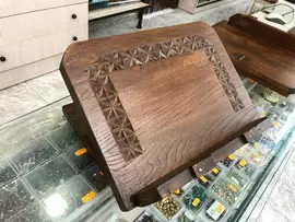 Atril de mesa elaborado en madera castaño con detalle "rosetón".Ideales para misales, biblias y libros voluminosos.Muy resistente.Medidas; 40x 30 cms. ...