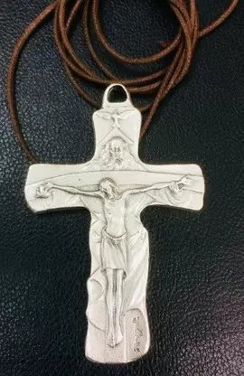 CRUZ SANTÍSIMA TRINIDAD PLATEADA CON CORDON 7 CM.