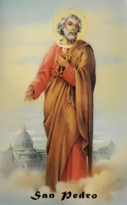 Paquete de 5 estampas iguales con oración de San Pedro.