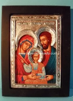 Icono bizantino de la Sagrada Familia. Plata pura.