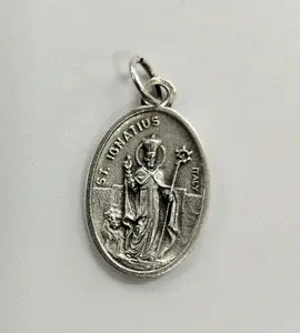Medalla de metal ovalada de San Ignacio de Loyola.