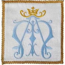 Letras "A" y "V" en hilo azul celeste. Iniciales de Ave María.