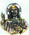 Placa del Sagrado Corazón de Jesús para usar en las puertas. Elaborada en metal dorado.