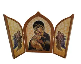 TRÍPTICO VIRGEN DE VLADIMIR. POLÍMERO EFECTO MADERA. 23X17 CM