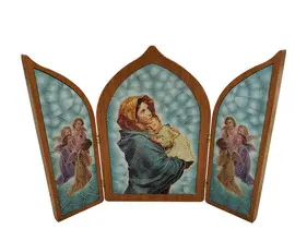 TRÍPTICO VIRGEN MADONNINA. POLÍMERO EFECTO MADERA. 23X17 CM