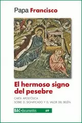 Carta apostólica Admirabile signum del Santo Padre Francisco sobre el significado y el valor del belén. Con esta Carta quisiera alentar la hermosa tradición de nuestras familias que en los días previos a la Navidad preparan el belén, como también la costumbre de ponerlo en los lugares de trabajo, en las escuelas, en los hospitales, en las cárceles, en las plazas. Es realmente un ejercicio de fantasía creativa, que utiliza los materiales más dispares para crear pequeñas obras maestras llenas de belleza. Se aprende desde niños: cuando papá y mamá, junto a los abuelos, transmiten esta alegre tradición, que contiene en sí una rica espiritualidad popular. Espero que esta práctica nunca se debilite; es más, confío en que, allí donde hubiera caído en desuso, sea descubierta de nuevo y revitalizada (n.1).