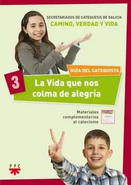 Guía del catequista "Camino, Verdad y Vida", realizada por los Secretariados de Catequesis de Galicia. La finalidad de esta serie es ayudar a trabajar de manera provechosa y amena el catecismo "Testigos del Señor", que está dirigido a niños y niñas de entre 10 y 14 años. En esta Guía del tercer cuaderno, titulada "La Vida que nos colma de alegría", se dan indicaciones para trabajar los temas del catecismo referentes a la Iglesia, los sacramentos y el final de los tiempos, a lo largo de 22 encuentros. Se indican varios posibles itinerarios, acompañados de actividades y recursos digitales que nos ayuden a acoger en la fe y a convertir en oración y compromiso existencial los contenidos que se proponen.